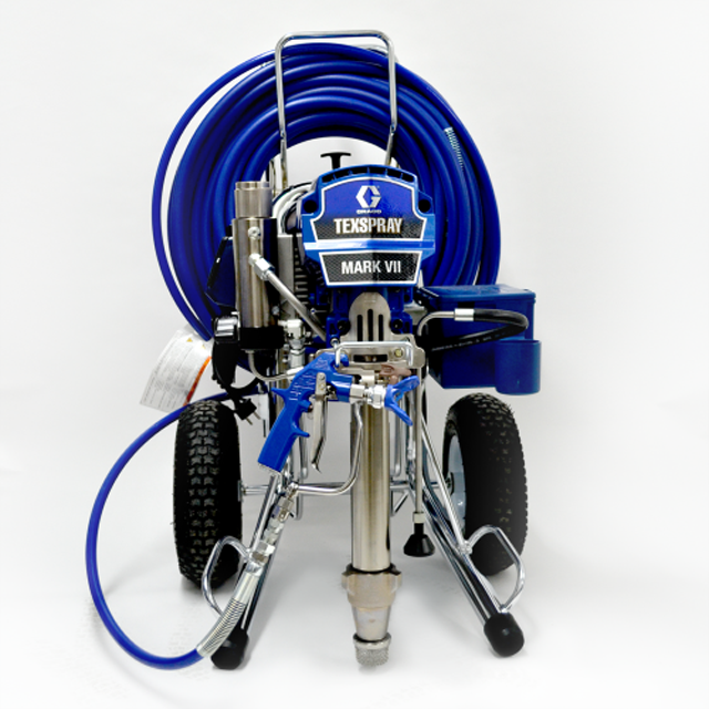 Aparatele Mark Max reprezinta solutii perfecte pentru aplicatii in spatii de locuit (inchise), pentru zone exterioare, cladiri industrial. Materiale utilizabile sunt grundul de adancime, lacuri, vopseli pe baza de silicat, dispersii, protectii la coroziune, filer, protectie la incendii si material de spacluit de dispersie. Avantaje: -> pompa Endurance ,garniturile V-Max si cu pistonul cu tehnologia Chromex asigura o fiabilitate deosebita echipamentului; -> curatare usoara datorita valvei de admisie QuikAccess; -> datorita panoului de comanda cu sistemul SmartControl 3.0 se obtine un regim de pulverizare consistent, cu pulsatii foarte reduse; -> motorul electric capsulat, realizeaza o reglare precisa a presiunii; -> datorita sistemului WatchDog se obtine protectia pompei de vopsire la functionarea in gol, oprind motorul la terminarea vopselei; Date tehnice: – Motor : 1.9kW/2,5 CP/ 230 V – Presiune de lucru: max. 230 bar – Trecere: 6,0 l/min (vopsea), – Marime duza: max. 0,041″, -Greutate 73kg