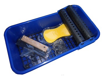 Setul contine 1 galeata de 12L, 1 burete de spalat, un spaclu de cauciuc si un gratar pentru decantare murdarie